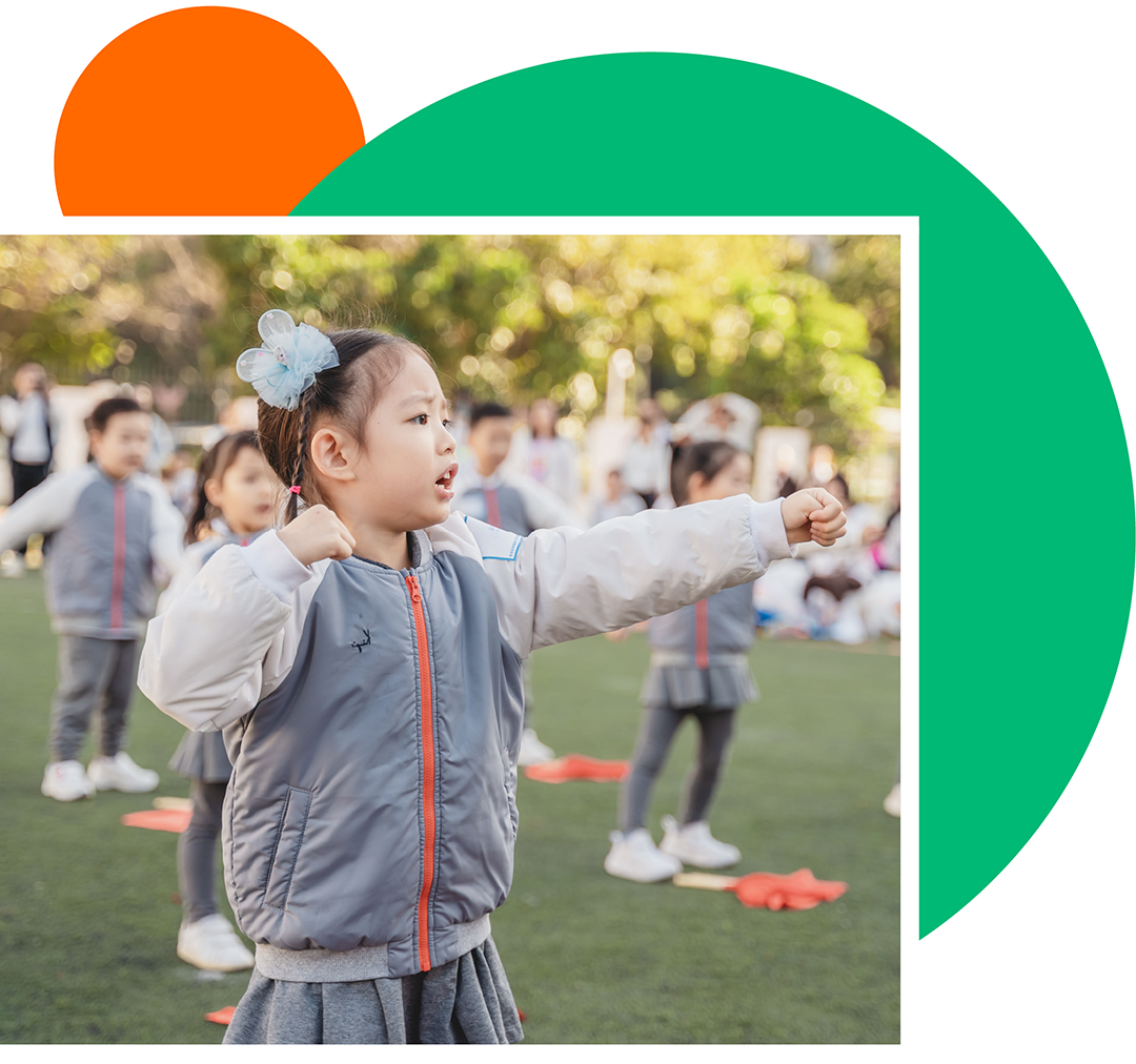 小小班和金宝班的萌宝们宛如可爱的小精灵,跳起了俏皮的“快乐模仿秀”,瞬间融化了所有人的心;K1宝贝们手持的运动彩圈在阳光下闪烁,伴随“运动真奇妙”的旋律,迅速移动,尽显默契;K2的孩子们气场全开,一场展示中华优秀传统文化风韵的武术秀让人不禁为之大声喝彩;K3的哥哥姐姐舞动着彩带,动作如行云流水,配合得天衣无缝。孩子们每一个动作都彰显着自信大方与运动技能,在运动场上散发出最耀眼的光芒!