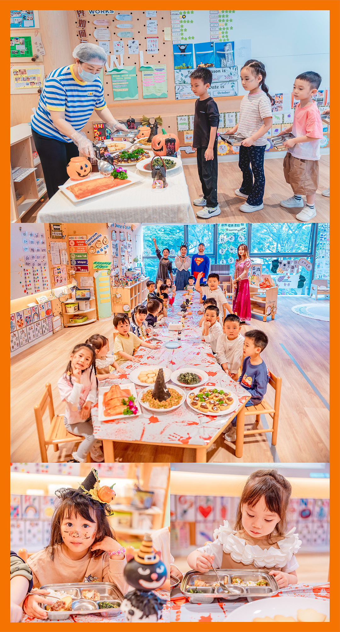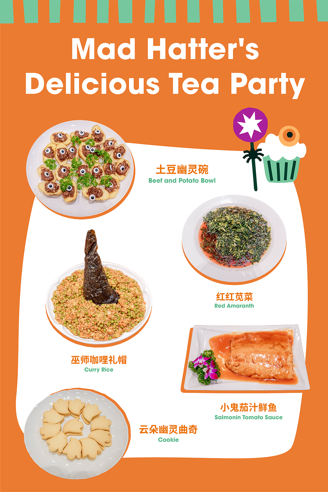 大厨们精心烹制,为孩子们带来万圣节限定的“疯帽子美味茶会”。过节仪式感的精准拿捏,实在太难忘啦!