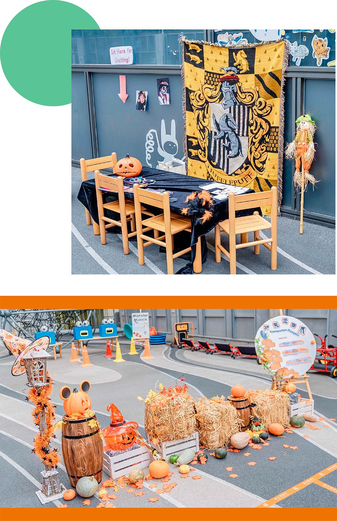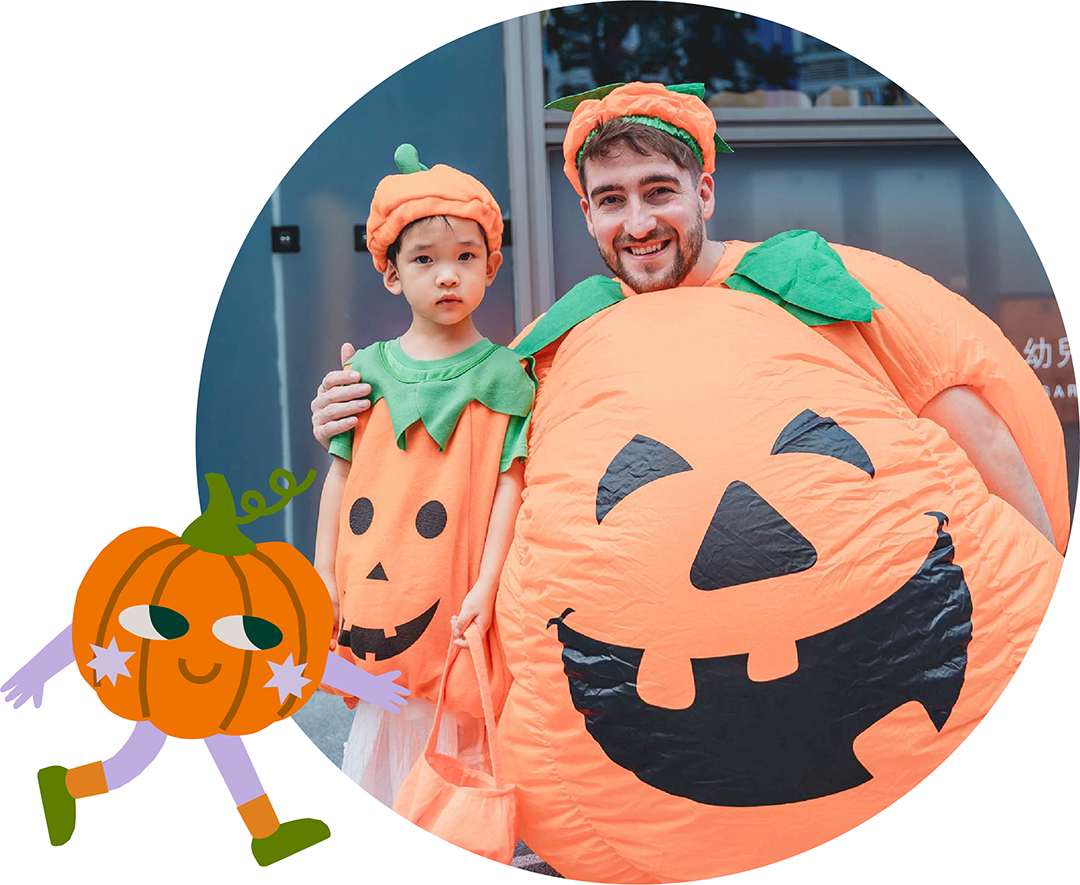 万圣节到了,如何缔造一个与以往“有点儿不同”的欢乐嘉年华呢?为了让孩子们充分感受各类节日在东西方文化中的地位和重要性,亲身体验节庆的文化内涵,金生在创新中不断寻求突破,老师们可谓是“脑洞大开”。
